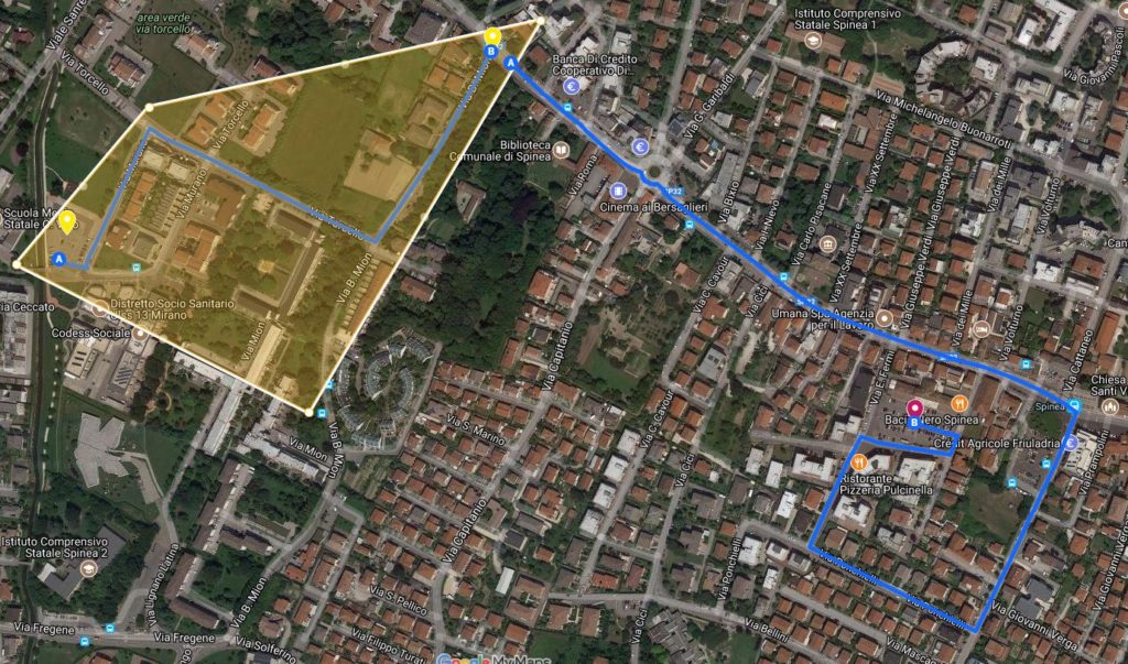– Dalle ore 13,00: raduno dei carri e dei gruppi in Via Murano e Via Torcello (strade all’interno dell’area gialla), i gruppi troveranno posto nel parcheggio di Via Murano e i carri si disporranno nel giusto allineamento e sequenza, lungo Via Murano e Via Torcello