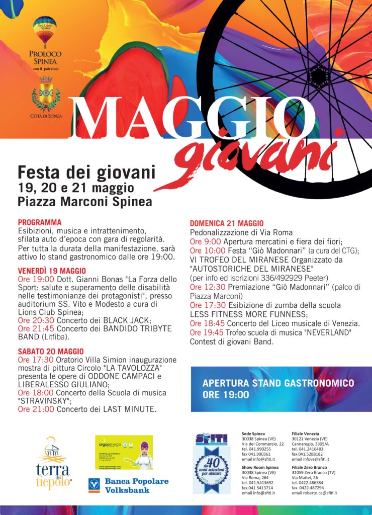 Mag 7, 2017 #auto storiche del miranese, #bandido, #black jack, #bonas, #evento, #festa dei giovani, #gio' madonnari, #la forza dello sport, #last minute, #less fitness more funnes, #liberalesso giuliano, #liceo musicale di venezia, #lions club spinea, #maggio giovani, #mercato dei fiori 21 maggio, #oddone campaci, #oscar de pellegrin, #pro loco spinea, #san vito e mdesto, #spinea, #stand gastronomico