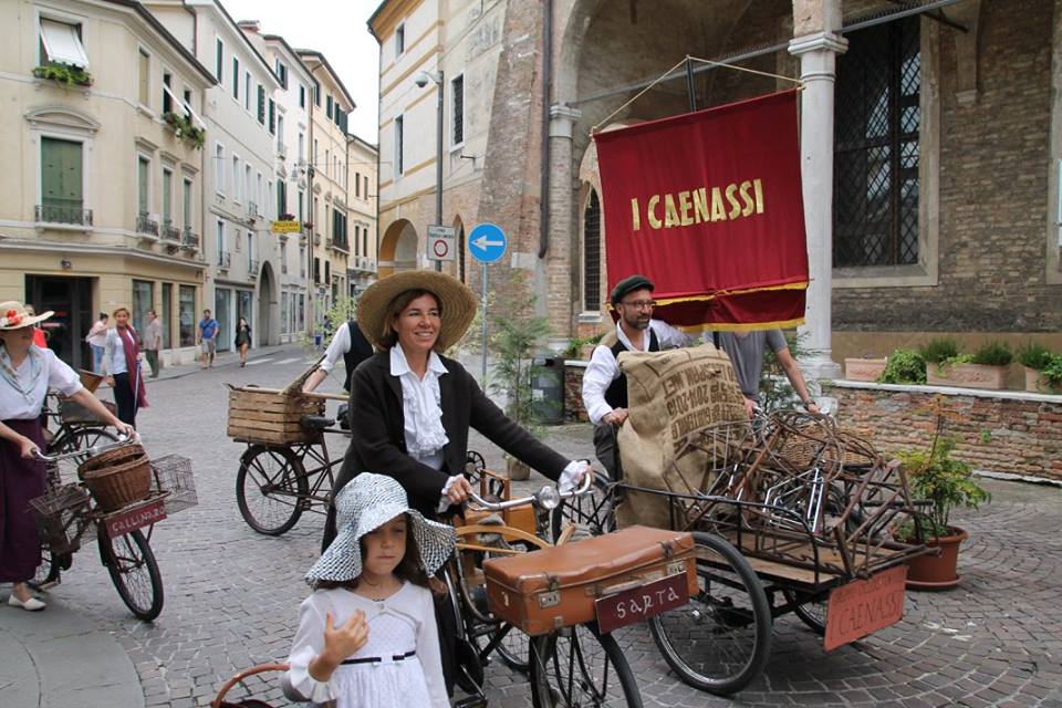 La cosa è nata in maniera spontanea e intuitiva, mi ero accorto di avere delle biciclette vecchie in magazzino e secondo me così non servivano a nulla, allora volevo trovare un modo per utilizzarle e anche condividerle con altre persone. Abbiamo fatto una prima sfilata riunendo un gruppo di amici storici, la cosa è apparsa subito interessante e simpatica al pubblico così da avere ulteriori inviti. Nel frattempo anche il gruppo di amici si è innamorato di questa iniziativa e sono nati così “I Caenassi”, gruppo ciclo storico che cerca di diffondere la cultura degli antichi mestieri in bicicletta, ma anche di aggiungerci la goliardia che tra amici c’è sempre stata.