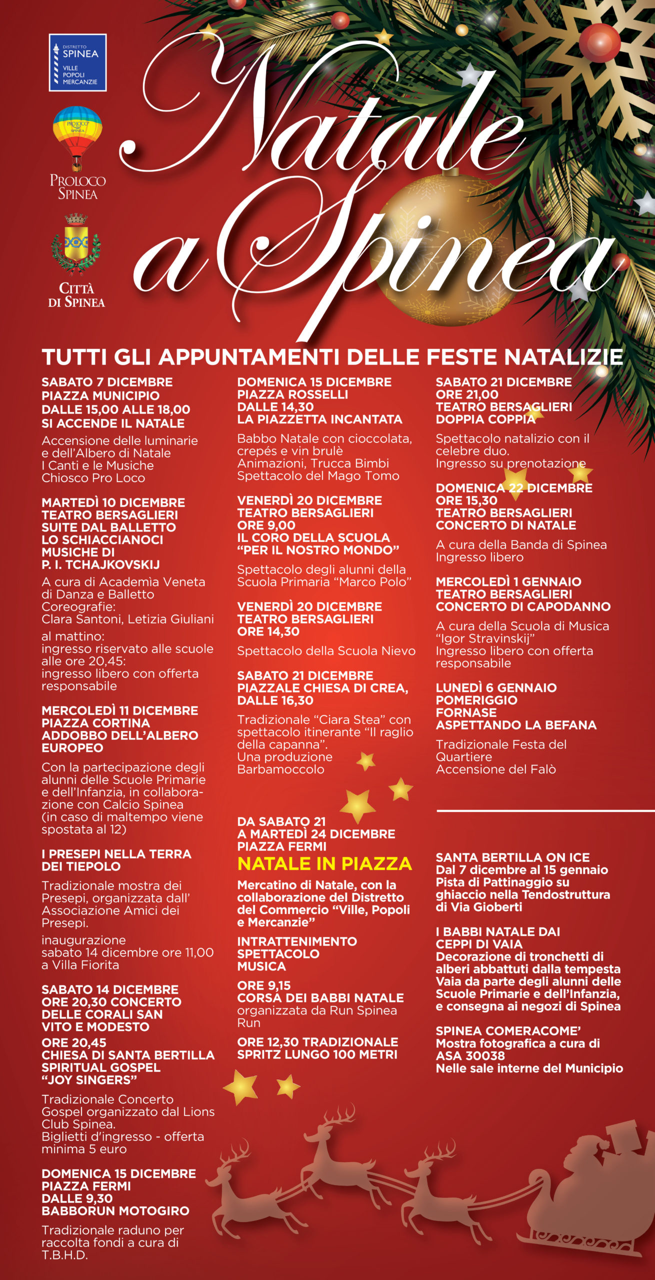 Ecco il programma degli eventi della città, seguiteci sulla nostra pagina Facebook per scoprire tutti i dettagli degli intrattenimenti in piazza E. Fermi da Sabato 21 Dicembre a Martedì 24 Dicembre ! #natalespinea2019