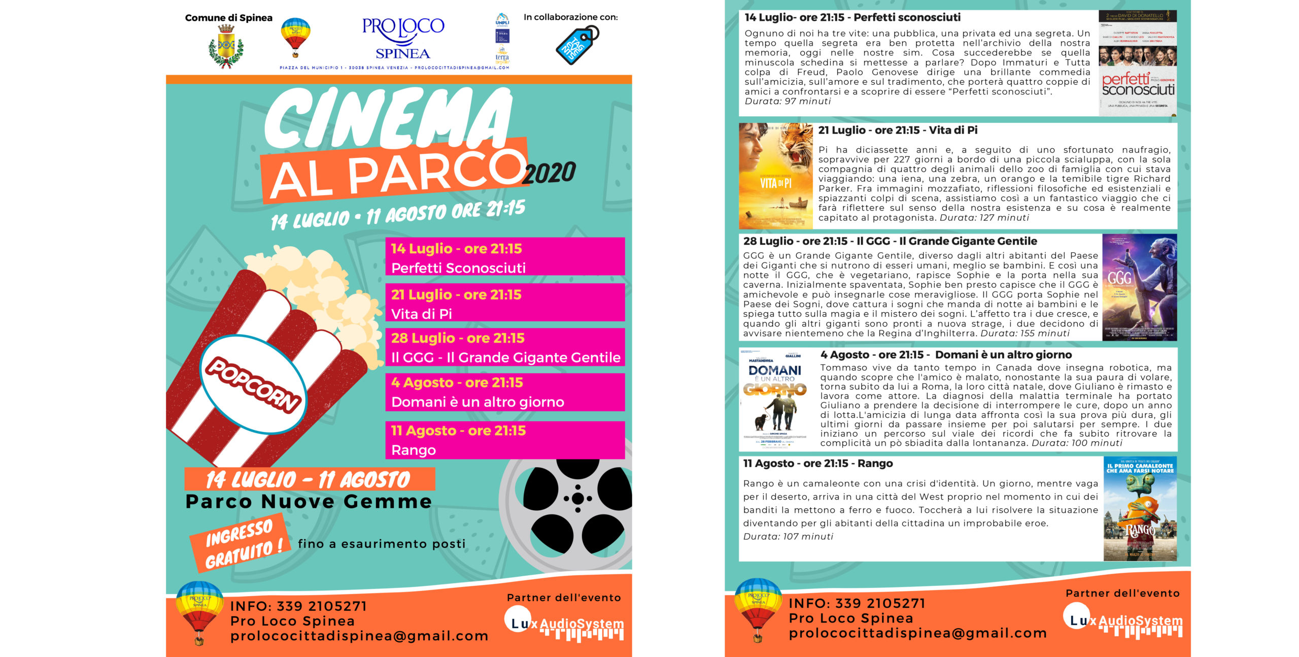 E’ tempo di ripartire e cercare, nel rispetto di norme e prescrizioni, di creare qualche evento che possa allietare qualche serata in questa estate un po’ “diversa”. Tutti gli eventi sono gratuiti e a posti limitati, vi consigliamo quindi di presentarvi per tempo ed eventualmente prendere informazioni alla nostra infoline. VI ASPETTIAMO DAL 14 LUGLIO ORE 21:15 AL PARCO NUOVE GEMME !!!!
